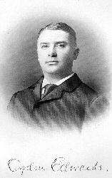 OGDEN EDWARDS Fortunate is the man who has back of him an ancestry honorable and distinguished, and happy is he whose lines in life are passed in harmony therewith. In person, character and in talents Mr. Edwards is a worthy scion of his race. Though his life has been one rather of modest reserve than of ambitious self-seeking, he has displayed excellent business ability and has won an honorable place among the business men of Troy. He belongs to a family that has left its impress upon the annals of the nation since an early period in the history of the country. The line of descent on the paternal side can be traced back eight generations in America to William Edwards, who settled in Hartford, Connecticut, about 1645, and married Agnes Spencer. Their son, Richard Edwards, became a merchant of Hartford and wedded Elizabeth Tuttle, of New Haven. Rev. Timothy Edwards, a son of Richard and Elizabeth Edwards, was graduated at Hartford in 1691, and had won the degrees of Bachelor of Arts and Master of Arts when twenty-two years of age. He became pastor of a church at East Windsor, Connecticut, in 1694, and remained as the beloved leader of his congregation until January 27, 1758 when he was called to his final rest, at the age of eighty-nine years. In the same year occurred the death of his renowned son, Jonathan Edwards. In 1711 he went as chaplain with a force of colonial troops on an expedition against the French in Canada. Perhaps no member of the family had been more highly honored than Rev. Jonathan Edwards, whose name is closely associated with the leadership of one of the mighty religious movements of the country. He was graduated in Yale College in 1720, at the age of seventeen years. For twenty-three years he devoted his life to the work of the ministry, and, beginning in 1727, he was for a few years co- pastor with his grandfather, Rev. Stoddard. He then became pastor at Northampton, Massachusetts. In 1744 he preached so strenuously against the immoralities of the church that those who were guilty persecuted him until, in 1750, they secured his dismissal. His real worth, however, commended him to the trustees of Princeton College, and he was in that year called to its presidency, where he served until his death, in 1758. He was associated with the work of revival conducted by the Rev. George Whitfield, and known to history as "the great revival of 1740 and 1742." Robert Hall says: "I consider Jonathan Edwards the greatest of the sons of men. He ranks with the brightest luminaries of the Christian church, not excluding any country or any age since the apostles." Sir James Mackintosh said of him: "This remarkable man was the metaphysician of America. His power of subtle argument, perhaps unmatched, certainly unsurpassed among men, was joined, as in some of the ancient mystics, with a character that raised his piety to fever heat. His treatise on "The Nature of True Virtue," and other works, elicited high praise from Lord Kairnes, Dugald Stewart and Sir William Hamilton, and were read throughout America and Europe. Timothy Edwards, a son of Rev. Jonathan Edwards, was married September 25, 1760, to Rhoda Ogden, of New Jersey, and died in 1813, at the age of seventy-five years. His sister Esther became the wife of Rev. Aaron Burr, president of the New Jersey College, at Princeton, and was the mother of Aaron Burr, vice-president of the United States. Another sister, Mary, became the wife of Timothy Dwight, long the honored president of Yale College, and a brother of Pierpont Edwards, who was United States district judge for Connecticut. Jonathan Edwards, a son of Timothy and Rhoda (Ogden) Edwards, was born October 10, 1764, and died August 31, 1832. He married Lucy Woodbridge, November 20, 1788, and their son, Matthias O., who was born April 8, 1793, and died June 25, 1843, wedded Sarah Bradley, October 12, 1815, and became the grandfather of our subject. His wife was born February 29, 1796, and died January 5, 1832. Jonathan O. Edwards, the father of our subject, was born at Binghamton, New York, August 13, 1825, and, in 1838, accompanied his father to Youngstown, Ohio. His death occurred in Troy, August 4, 1897. He enjoyed a national reputation as a breeder of merino sheep and short-horn cattle. He devoted his attention to sheep raising until 1879, and then entered into partnership with his sons, Ogden and Allen, in the breeding of short-horn cattle, this relationship being maintained until 1888. His herd carried off many prizes at the state fairs. He was married, May 19, 1859, to Joanna W. Allen, who was born at Ellsworth, Ohio, March 8, 1827, and belonged to a family not less honored and prominent than the Edwards family. The first of the name in America were Samuel Allen and his wife, Ann, who left their home in Bridgewater, Somerset county, England, in 1620, and came to America, locating at Braintree, Massachusetts, ten miles southeast of Boston. Seven generations of the family have since resided in the new world. They came from sterling English stock, and have been distinguished in this country for their religious zeal and piety, their patriotism and their love of justice and freedom. Samuel Allen, a representative in the second generation, was town clerk of East Bridgewater, Massachusetts, in 1660. He had a sister, Sarah, who became the wife of Lieutenant Josiah Standish, a son of Miles Standish. Samuel Allen, the second, married Sarah Partridge, and her son, Samuel, the third, was married, in 1685, to Rebecca Clark, by whom he had a son, Joseph Allen, who was born at Bridgewater, Massachusetts, in 1693. In 1701 he removed to Norwich, Connecticut, and, in 1729, married Rebecca Fuller. Their son, Asahel Allen, was born in 1743, and was married, in 1765, to Desire Eames. She was a most patriotic woman, who did all in her power to aid the colonists, and gave her son and husband to the army that fought for the liberty of the nation. Enoch Allen, a son of Asahel and Desire Allen, marr