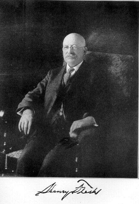 HENRY FLESH Henry Flesh. In the contemplation of such a character as was the late Henry Flesh realization comes as to the great loss sustained in his death. His was a life of signal usefulness and its influence was potent and beneficial. Fidelity to trust and conscientious discharge of every duty was part and parcel of his very nature. Highly gifted, he exercised his talents nobly. A natural leader, of high character, he possessed also that genuine kind of courtesy that is not the mere child of the tongue, but came from a warm nature that wished the world well. Mr. Flesh was born in the little town of Ellingen, Bavaria, June 99, 1837. At the age of fifteen years awakening ambition caused him to cross the seas to America. Almost immediately he came to Ohio, and after four years residence at Dayton and two years stay at Troy finally located at Piqua in 1858. Caroline Friedlich was born December 7, 1842, in Bucks county, Pennsylvania, a daughter of Mose's and Emma (Abel) Friedlich. Shortly after her birth her father brought his family to Piqua, where he was engaged in business, was for many years actively identified with the growth of the city, and became one of its most substantial and influential citizens. His daughter, Caroline, in her sixteenth year, met Henry Flesh, and after a courtship of three years they were married, November 19, 1862, and for a span of fifty-seven years resided together at Piqua. This long period of activity in the maintenance of an ideal home and in the proper recognition of their obligations to the community at large, filled their lives with countless blessings. Mr. Flesh was inseparably connected with the growth and development of the town of his adoption. At first engaged in mercantile pursuits, he afterward, because of his peculiar equipment for the work, became identified with financial affairs. For more than a third of a century he was connected with the Citizens National Bank and at the time of his demise was its honored president. He was actively identified with the Piqua Electric Company and it was largely through his progressive spirit that electric lighting was first installed at Piqua. He was president of the Cron-Kilns Company and the Border City Building & Loan Association, and a director of the Piqua Savings Bank and of the Piqua & Troy branch of the Cincinnati, Hamilton & Dayton Railway Company. He organized and was for several years president of the Citizens National Bank of Covington, Ohio. But with all his important business and financial activities, Mr. Flesh found time to serve his city and his state. He was at various times president of the Ohio Bankers Association, president of the Miami and Erie Canal Association and a member of the Ohio Centennial Commission. For more than a quarter of a century he was a member of the city council of Piqua, serving for many years as its president. At the time of his death he was a life trustee of the Piqua Memorial Hospital and treasurer of the board. Sound in judgment and keen in perception, his services in an advisory capacity, freely given, were invaluable not only to his business associates but to numberless others who for years looked to him for counsel and advice. As a fraternalist, he was a past master of Warren Lodge, Ancient Free and Accepted Masons, and a thirty-second degree Scottish Rite Mason. Loyal in his friendships, he had a wide acquaintance and enjoyed the sincere regard of his associates, whose companionship he cherished. Yet his social nature did not cause him to be other than a man who loved his home, and when he passed away, May 29, 1919, in his eighty-second year, his family lost a devoted husband, father and counselor. Return to the Biography Index Copyright © 1999 by Computerized Heritage