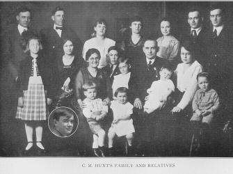 C. M. HUNT C. M. Hunt. Among the prominent citizens of Troy, one who during a long and successful career was identified with various lines of enterprise is C. M. Hunt. Mr. Hunt was born in Darke county, Ohio, in 1868, a son of Ralph and Lydia (Walker) Hunt; his father being a well-known agriculturist and influential citizen of Darke county, where he served as a justice of the peace for many years. C. M. Hunt received a country school education in Darke county and was brought up as a farmer's son. His boyhood and youth were devoted to the pursuits of the soil and for several years after attaining manhood he continued to be engaged in farming. Later removing to Laura, Ohio, where he applied himself to the restaurant and butcher business. From Laura, Mr. Hunt went to Xenia, this State, where he embarked in the hardware business, but in 1905 disposed of his interests there and came to Troy, here founding an implement and hardware business, which he conducted with much success for ten years. During this time he was elected a member of the board of Miami county commissioners, on which he served creditably for four years, and after leaving office established the Melodia Company, for the manufacture of phonographs. Subsequently he disposed of his holdings therein to his son, Hiram Hunt, and W. R. Hudson, and retired from active business affairs. Mr. Hunt was known during his active years as a shrewd, energetic and capable business man, of sound practicality and unquestioned integrity. During the World war period he was active in all local war movements, and at all times has been known as a public spirited citizen and supporter of worthy enterprises. He is prominent fraternally, belonging to the Masons, Independent Order of Odd Fellows, Benevolent and Protective Order of Elks, Knights of Pythias and Improved Order of Red Men, in all of which orders he has numerous friends. Mr. Hunt married Elvira, daughter of John Wright, of Darke county, and they have had five children: Myrtle, who married Earl McDonald, and they are the parents of four children, Katherine, deceased, Juanita, Charles Joseph and Gladys M.; Hiram W., who married Blanche Brady, and has one son, Richard E.; Harry, who married Florence Wooley, and Harry, who married Helen Deihl, and they have four children, Charles Bobby R., Louis B., and Betty Joan. Mrs. Hunt's father was a farmer of Darke county, where he lived his whole life. He married Susan Penny, of the same county, and both are now deceased. To their union had been born eight children, in order of birth as follows: Mary E.; Calvin, deceased; John W., Susanna, deceased; Martha A.; Elvira (Mrs. Hunt); Arren E.; Elna, also deceased. All surviving live in Ohio, except Arren E., who lives in New York. Return to the Biography Index Copyright © 1999 by Computerized Heritage