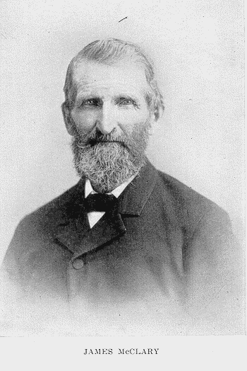JAMES McCLARY JAMES McCLARY, deceased, formerly one of Newberry Township's most respected citizens and prominent and useful men, was a worthy representative of one of the sturdy old pioneer families of Miami County. He was born on the old McClary homestead farm, about two miles north of Covington, Miami County, Ohio, February 18, 1821, and died at Covington, April 15, 1906. His parents were John and Eliza (Brandon) McClary. The father of the late James McClary was born in Kentucky and came to Miami County, Ohio, in 1812. He brought with him his wife, Eliza Brandon, who was born in South Carolina, a daughter of Benjamin Brandon, a Revolutionary soldier, who settled in Miami, County about the same time, locating near Piqua. Shortly after marriage, John and Eliza McClary established the home ever since known as the McClary homestead, not far from Covington, Miami County. On the above farm James McClary grew from childhood to manhood. Pioneer conditions prevailed, great expanses of uncleared land and forest stretching between the different civilized points, a trip to the mill, in his boyhood, involving as much preparation and loss of time as now is required to cover hundreds of miles by train or automobile, and the performance of many errands, except the one of carrying the grist and waiting for it to be ground by means of the old-time water wheel, and the returning home with the bag of flour on the back of his pony in front of him. He was quite small when he first began to be entrusted with this very important mission and when he was permitted to spend the first night, when part way home, at Grandfather Brandon's, he thoroughly enjoyed the unusual relaxation. In his boyhood work instead of play came first, not a great deal of time being given, either, to the acquiring of knowledge. He was wont to tell his children of his first primer, which was made out of a paddle, on which his alphabet was printed and which served the purpose very well. Many ingenious and thrifty methods were made use of in the early days, when books were scarce and money was little in circulation. Life had many hardships for both youth and age, in those days, but, on the other hand, more simple pleasures pleased than satisfy the present generation, and there are few of the old remaining pioneers who will not fondly recall the early times. Work, outdoor life, sufficient recreation, all contributed to James McClary growing into strong sturdy manhood, while a naturally quick understanding and generous disposition, brought him the confidence and esteem of those with whom he was associated. In 1842 James McClary was married to Nancy Buchanan, who was a daughter of Col. George Buchanan. The latter was a native of Rockingham County, Virginia, where he married Nancy Cassiday, and together they came to Ohio, in 1803, locating first at Deerfield, Warren County. Probably in the spring of 1808 the Buchanans moved to what is now West Milton, Miami County, where the father engaged in farming until the opening of the War of 1812. He then became captain of an organization known as the Frontier Guards and was placed in charge of the supply depot at the junction of Greenville Creek and the Stillwater, the names designating these points at that time being Fort Buchanan and For Rowdy, now Covington, a quiet little city far removed from any indication of military disturbance. At the beginning of the war, Colonel Buchanan removed his family to the east side of the Stillwater, in Montgomery County, just over the county line, and there the Buchanans lived until 1830, when Colonel Buchanan settled on a farm in Section 6, Newberry Township, Miami County, which remained the permanent home. By trade he was a carpenter and cabinetmaker but he never lost interest in military affairs and following the close of the War of 1812, remained active in the Militia. Both he and wife were members of the Christian Church. He lived to the age of eight-three years, dying in 1862, and was survived for nine years by his widow. Following his marriage, the late James McClary built a house on a small tract of land which his father had given him off the old homestead, in recognition of his cheerful assistance given all through his youth, and on that place he lived until his parents died, a few years later. He then sold out and went to Piqua and during the eighteen months of his residence there he began to acquire shares in the old homestead and subsequently purchased the interests of all the heirs and became sole owner of the property. During the years of subsequent residence on the farm, he assumed all the duties of a citizen of his township and frequently was tendered public office and at times served as assessor and as a member of the Board of Trustees. Later, when he retired to Covington, he was elected a justice of the peace, serving most acceptably in that position for a number of terms, and for years was occupied in settling up estates and administering upon them. He was a man of such undoubted and unimpeachable integrity, that his fellow citizens entrusted to his judgment their most important business concerns. Mr. McClary was married (first) to Nancy Buchanan, who died in 1888, and several years later he was married (second) to Susan Trout. His four children were born to his first union, namely: Eliza Evaline, deceased, who was the wife of John West; George D., who lives in West Covington; Winfield Wesley, who lives at Butler, Pennsylvania; and Laura, who resides on North High Street, Covington. Miss McClary is one of Covington's best known and most highly esteemed ladies and probably one of the most substantial, owning various residence and business properties in this city. She takes a natural pride in her ancestry and justly cherishes and reveres the memory of her father. Return to the Biography Index Copyright © 1998 by Computerized Heritage