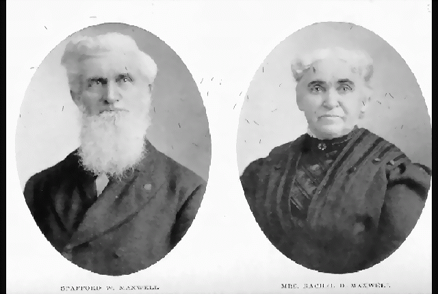 SPAFFORD WOODHULL MAXWELL SPAFFORD WOODHULL MAXWELL, a representative retired citizen of Staunton Township and a veteran of the Civil-War, resides on his valuable farm of 102 1/2 acres which lies along the Troy and Piqua Turnpike, with the Dayton Miami Railroad passing through it. He was born on his father's farm, near Franklin, Ohio, October 20, 1836, and is a son of Thomas and Susanna (Jones) Maxwell. The paternal grandfather of Mr. Maxwell, Thomas Maxwell, was born in Scotland and came to America and settled in Monmouth County, New Jersey, prior to the Revolutionary War, and died in Ohio when aged eighty-two years. His family consisted of seven sons and two daughters. Of the sons, Thomas was one of the first born, in 1880, and he was six years old when the surviving members of the family decided to migrate to Ohio. The trip on the river was made on a flat-boat and landing was effected at Cincinnati. A few years later the family settled at Franklin, in Warren County, and there Thomas followed chairmaking for some years, and then bought a farm in Warren County which he sold in 1839 and purchased the farm which his son, Spafford W., now owns in Miami County. Its former owner was Caleb Hathaway, who had entered the land from the Government and Mr. Maxwell has the old deed, which bears the signature of Thomas Jefferson, then President of the United States. Thomas Maxwell the second spent the remainder of his life on this farm, his death occurring in October, 1881. He was twice married, (first) to Susanna Jones., who died on the present farm in the fall of 1839, and (second) to Anna McCurdy, who came to Miami County from Lancaster County, Pennsylvania. She died in 1879, leaving no issue. The four children born to the first union were: Stephen J., who is now deceased; Martha, deceased, who married William Duncan, also deceased; Rachel, deceased, who married T. Rowlands, also deceased; and Spafford Woodhull. The name borne by Mr. Maxwell was bestowed on him by his grandmother in memory of a distinguished minister of New Jersey. Spafford W. Maxwell was too young to remember the overland journey from Warren to Miami County, but he has very vivid recollections of his boyhood, which was spent in assisting his father to clear the farm and in attending school in the log structure provided for that purpose. He continued to live at home until 1864, when he entered the Federal army as a member of Company K, 147th Pennsylvania Infantry, under Capt. J. F. Counts. When the regiment reached Washington City he was promoted to be corporal of his company, and served in that rank until the close of the war. In the present year of universal commemoration of President Lincoln, he recalls with pleasure the time when he saw him, at Arlington Heights, in the last year of the war. Upon his return to private life, Mr. Maxwell resumed farming with his father, and in 1872 he purchased the place and for many years continued agricultural pursuits. He has done large amount of improving. His commodious nine-room house is mainly of frame, but one part of it is a hewn log structure, which was put up in 1818. On January 8, 1868, Mr. Maxwell was married to Miss Rachel Devol, a daughter of Harrison Devol, an old pioneer, and they have had seven children, namely: Minnie, who died in 1905, was the wife of Edwin Foster; Walter, who resides at Troy, Ohio, married Carrie Millhouse; Sallie, who married Frank Kendall, resides with her parents; Anna, who resides at Troy, married James Gunder; Bertha and Merta, twins, the former of whom is the wife of Harry Morrow, of Piqua, and the latter of whom died when aged eighteen years; and Wilber D., who resides on a farm near Casstown, Miami County, and married Gertrude McDowell. Mr. Maxwell and family belong to the Presbyterian Church, in which he has been an elder for some forty years. In his younger days he was a great Sunday School worker and served for a long time as superintendent of the school. In politics he is a Republican and has always taken much interest in public matters and at various times has acceptably served in township offices. He is a member of Coleman Post, G.A.R., at Troy, Ohio. Return to the Biography Index Copyright © 1998 by Computerized Heritage