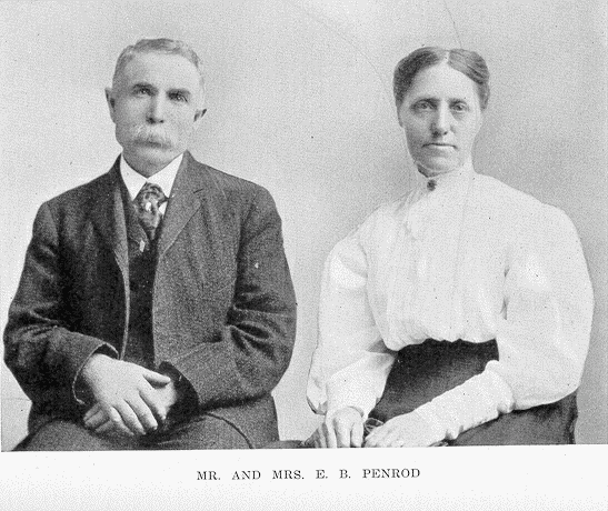 E. B. PENROD E. B. PENROD, general farmer and dairyman, residing on his excellent farm of 107 1/2 acres, which is situated one and one-half miles north of Piqua, in Spring Creek Township, was born in Shelby County, Ohio, not far from Newport, August 22, I856, and is a son of Levi and Martha (Irwin) Penrod, and a grandson of Samuel Penrod. Samuel Penrod was a pioneer settler and preacher in Shelby County. He was born in Pennsylvania, of German ancestry, and during the whole of his mature life he engaged in farming and in serving as a minister in the Christian Church, and in the latter capacity he visited different points in the county and was a revered and beloved man. The old church near Newport that he was instrumental in building still stands. His wife was a native, of New Jersey. They had six children, namely: Jacob and Mary Jane, both deceased; Phebe Ann; Levi; and William, who died from starvation and inhuman treatment while held a prisoner of war at Andersonville, during the Civil War. Samuel Penrod died in Shelby County, March 17 1879, his wife having passed away June 22, 1864 Levi Penrod, father of E. B., was born in Shelby County, Ohio, in the old log house that was built by his father, and in which his own sons were also born. He owned an adjoining farm to the homestead and where his death occurred. He married Martha Irwin and they had seven children born to them, as follows: E. B.; Rachel Anna, who died when aged nine months; James S.; Emma Jane, who married James Caldwell and lives in Shelby County; Lucy Ellen, who married William Peters and lives at Piqua, Ohio, Etta, who married Levi Border, lives in Shelby County; Eliza, married, who lives at Cleveland; and Justice, who works the home farm in Shelby County. E. B. Penrod obtained his education in the schools of Shelby County and remained at home with his father until his marriage, after which be moved to Miami County and rented land until April 11, 1904, when he settled on his present farm. He here carries on a general agricultural line and gives considerable attention to the milk industry, operating a route to Piqua. Mr. Penrod was married (first) April 29, 1877, to Miss Rosella Kuhn, who died October 20, 1888, a daughter of Gabriel Kuhn. She was survived by three children: Maud, Myrtle and William Arthur. Maud married Charles Rummel and they live in Shelby County and have two children-Walter and Opal. Myrtle adopted the noble profession of trained nurse and resides at Brooklyn, New York. William Arthur assists his father at home. Mr. Penrod was married (second) August 22, 1890, to, Miss Sarah Ellen Furman, who was born July 10, 1856, a daughter of William and Tacy (Stoker) Furman, who came from the State of New York to Shelby County and went from there to Iowa, where he was accidentally killed while operating a saw-mill, when Mrs. Penrod was only nine months old. His widow returned to Ohio, settling at Houston, later removing to Piqua, Miami County, where she died January 20, 1908. Mr. and Mrs. Furman had six children, all of whom. survive. Mr. and Mrs. Penrod have two children: Elva and Opal, both attending school. In politics Mr. Penrod is a Republican, all members of the family being of that political faith. With his family he belongs to the Christian Church. Return to the Biography Index Copyright © 1998 by Computerized Heritage