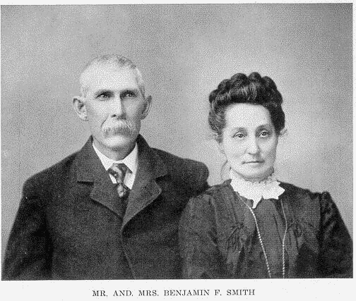 BENJAMIN FRANKLIN SMITH BENJAMIN FRANKLIN SMITH is the owner of 237 acres of land in Lost Creek Township, Miami County, Ohio, his home farm consisting of 157 acres located about seven miles northeast of Troy at the intersection of a mud road and the Lost Creek Extension Pike . He was born on his father's farm in Montgomery County, Ohio, April 5, l853, and is a son of Alexander and Isabella (Waymeyer) Smith. Alexander Smith was born in Rock Bridge County, Virginia, in 1820, and was one of a large family of children. Although the father of this family was poor, he reared his children in the proper way and they all grew to be useful men and women in the various communities in which they lived. Alexander was the youngest member of the family, but because of his great size was generally referred to as the "big brother." He became a skilled workman as a blacksmith, learning the trade in Virginia in his youth. When a young man he left his native state because of his antislavery views, and later wanted the other members of the family to leave in order to afford their children better educational advantages. He came to Ohio on horseback and while passing through the swamps of Indiana was mired, which necessitated his walking the remainder of the way. He was about twenty years old when he arrived at Dayton, Ohio, and he soon erected a shop at Frederick, about twelve miles distant from that city. He later purchased a farm in Butler Township, Montgomery County, on which he erected a shop, and in addition to general farming he did many odd jobs of blacksmithing for his neighbors. He continued there until 1862 when he sold his farm and purchased the present home farm of the subject of this sketch, in Lost Creek Township, Miami County. Here he continued to live until his death in March 1889. He married Isabella Waymeyer in Montgomery County, she being a native of that county. Her death occurred about the year 1887. The following children were born to them: Sarah, wife of Joseph Ray; Jennie, wife of John Tobias; Benjamin Franklin; James; Wesley; Harrison; and William, who died it the age of one year. Benjamin Franklin Smith, familiarly known as Frank, was about nine years of age when his parents moved to Miami County, and located upon his present farm. His education was limited and when quite young he began work on the home farm, on which he has since continued. Upon the death of his father he bought out the other heirs in this property, on which he has made many important improvements. The brick house in which he lives was erected in 1840. He has always been a hard and industrious worker, and all that he possesses has come through his individual efforts. He and his brother James, purchased another tract of 160 acres in Lost Creek Township. Mr. Smith has traveled extensively through the South and West, and been pretty generally over the country, but he considers the Miami Valley the garden spot of the universe. In addition to the property mentioned, he also is the owner of five good residence properties in Casstown, and a small farm on the Miami River in Staunton Township. June 6, 1889, Mr. Smith was married to Miss Anna Tobias, a daughter of Daniel and Elizabeth (Whip) Tobias, from near Dayton, both of her parents now being deceased. She was one of the following children born to them: Jonathan; Mary Elizabeth, wife of J. Jackson; Sarah, wife of John Barnett; Laura; Anna; Walter; and Daniel, who died young. Politically, Mr. Smith is a Republican. Return to the Biography Index Copyright © 1998 by Computerized Heritage